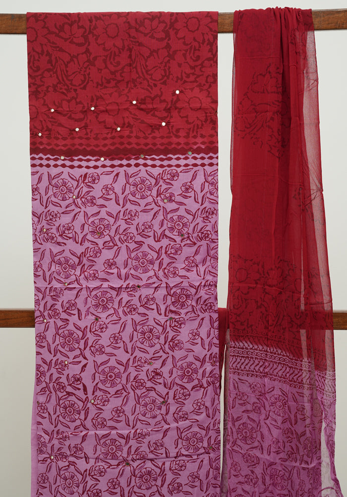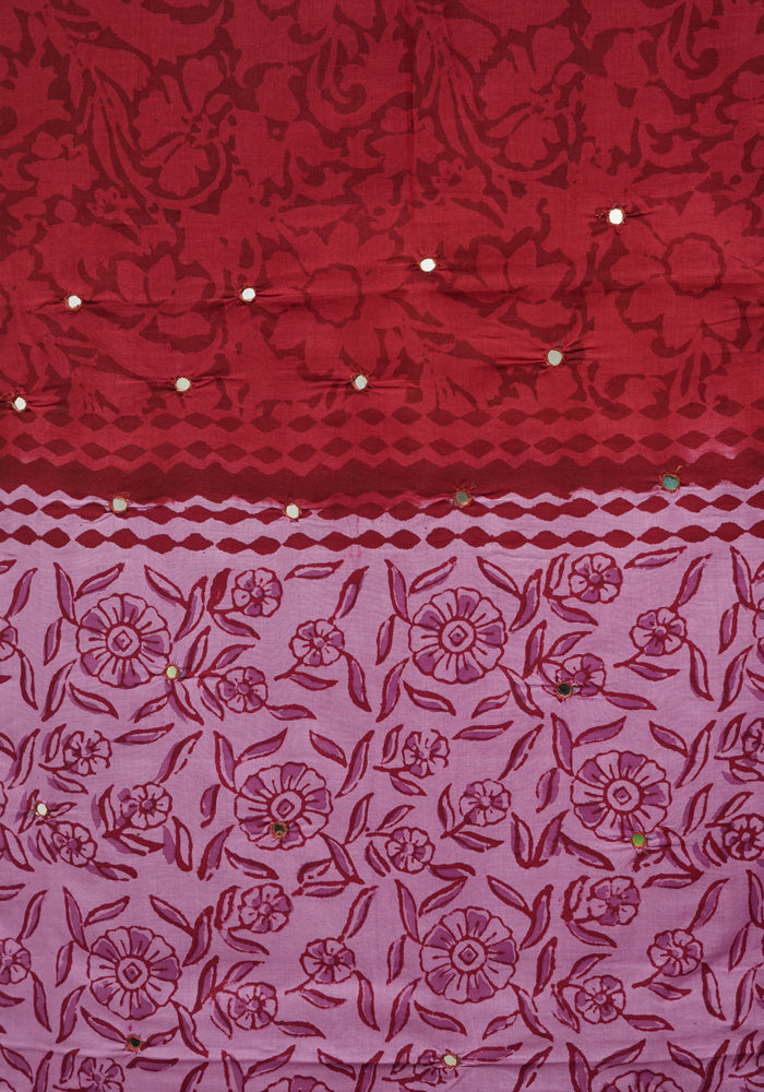 Purple and Red Unstitched Cotton Salwar Set With Mirror Work