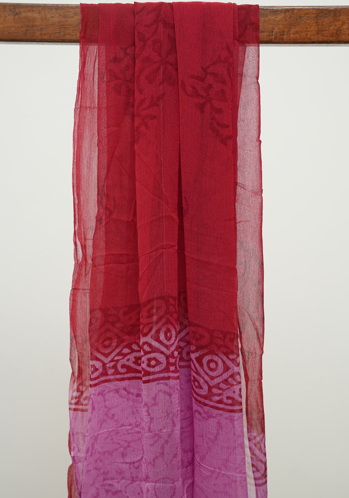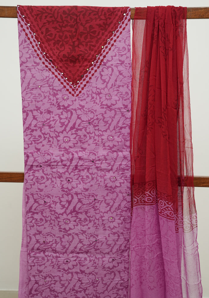 Purple and Red Unstitched Cotton Salwar Set With Mirror Work