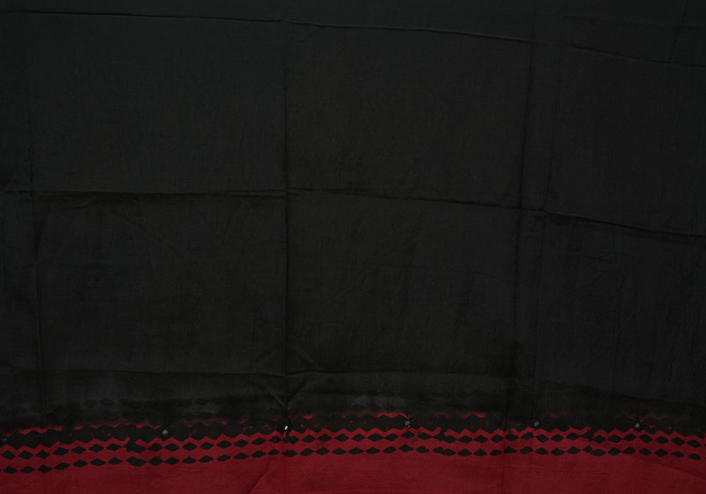 Red and Black Block Printed Chennur Silk Saree with Mirror Work is OUT OF STOCK currently and available on pre-payment only. Order now for delivery within 2 weeks.