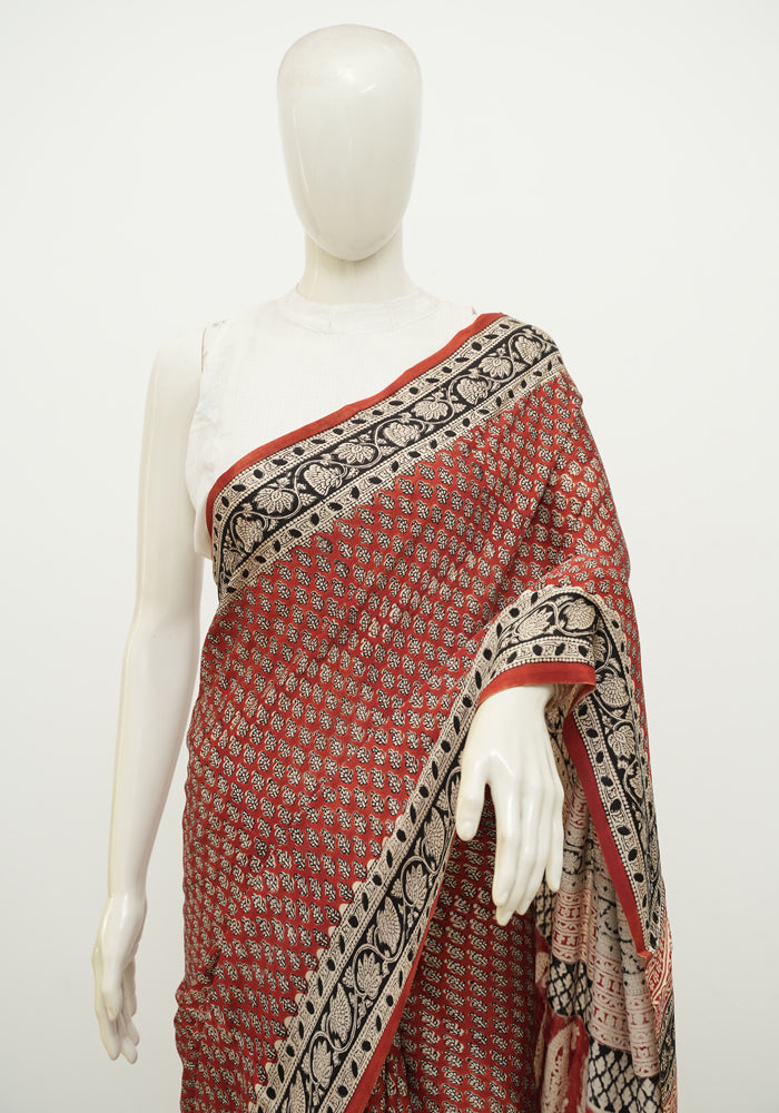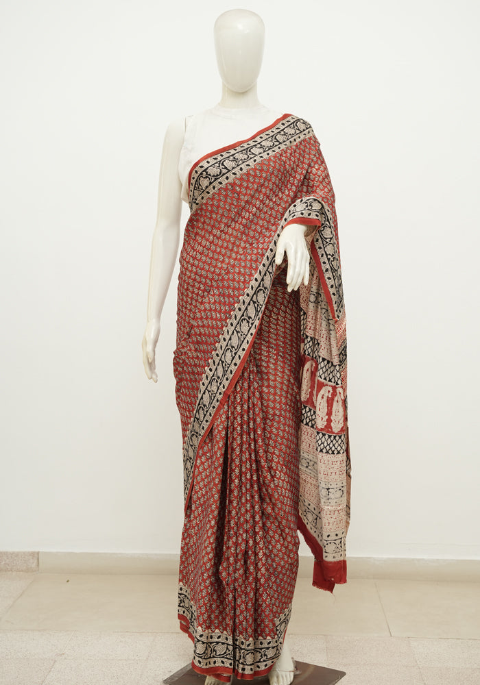 Discover the timeless elegance of hand block printed Modal Silk sarees. Made with the finest modal silk, this saree redefines elegance. The saree is soft , flowy and drapes like a dream.