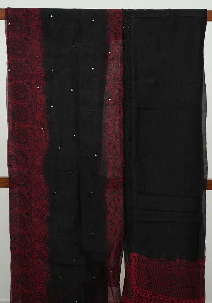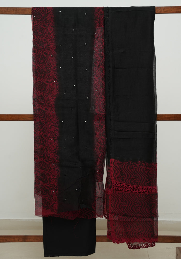 Red and Black Unstitched Super Net Salwar Set With Mirror Work is OUT OF STOCK currently and available on pre-payment only. Order now for delivery within 2 weeks.