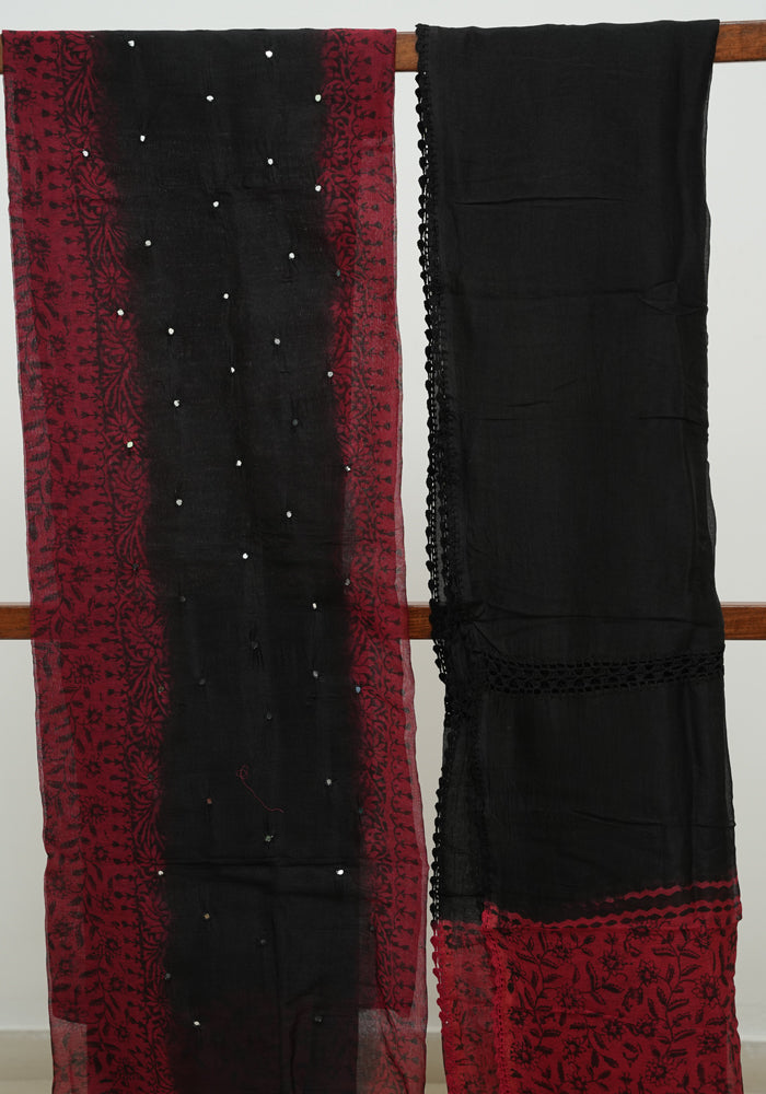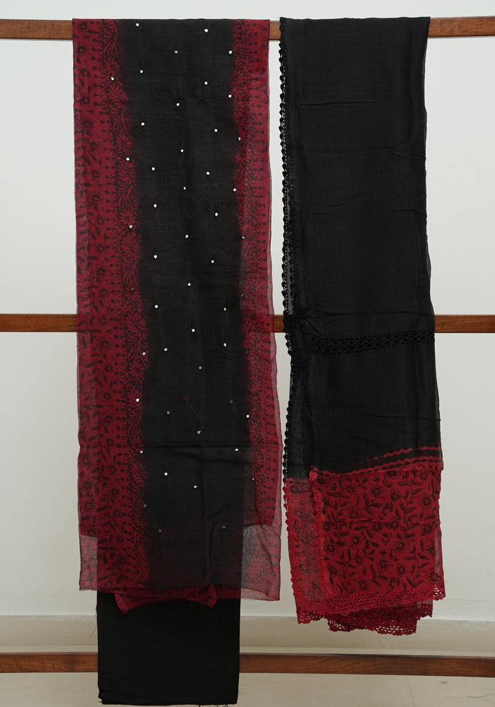 Red and Black Unstitched Super Net Salwar Set With Mirror Work is OUT OF STOCK currently and available on pre-payment only. Order now for delivery within 2 weeks.