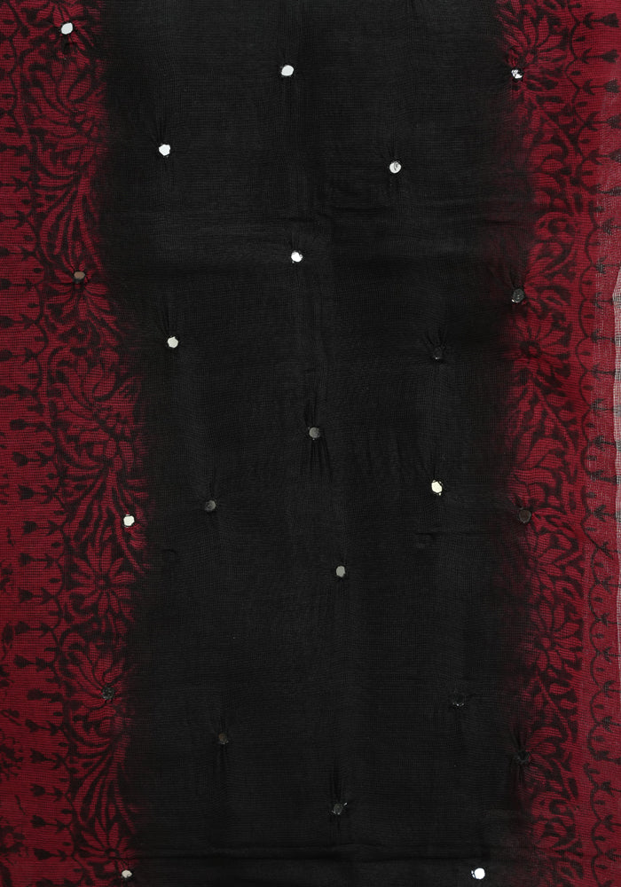 Red and Black Unstitched Super Net Salwar Set With Mirror Work