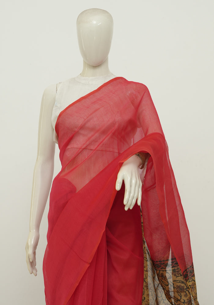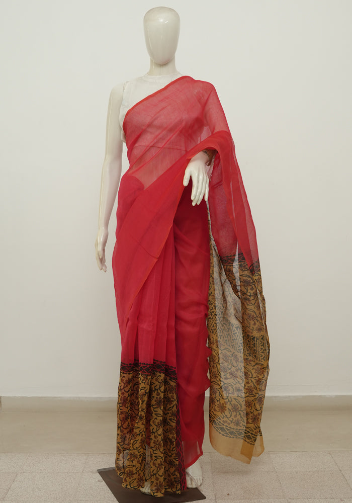 Red and Brown Block printed Supernet Kota Saree is OUT OF STOCK currently and available on pre-payment only. Order now for delivery within 2 weeks.