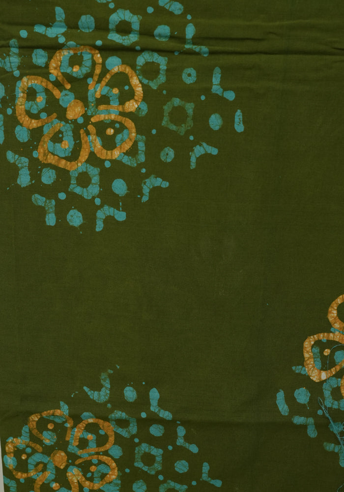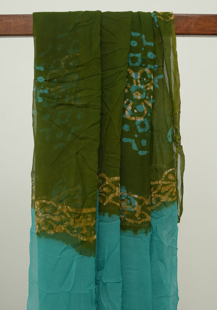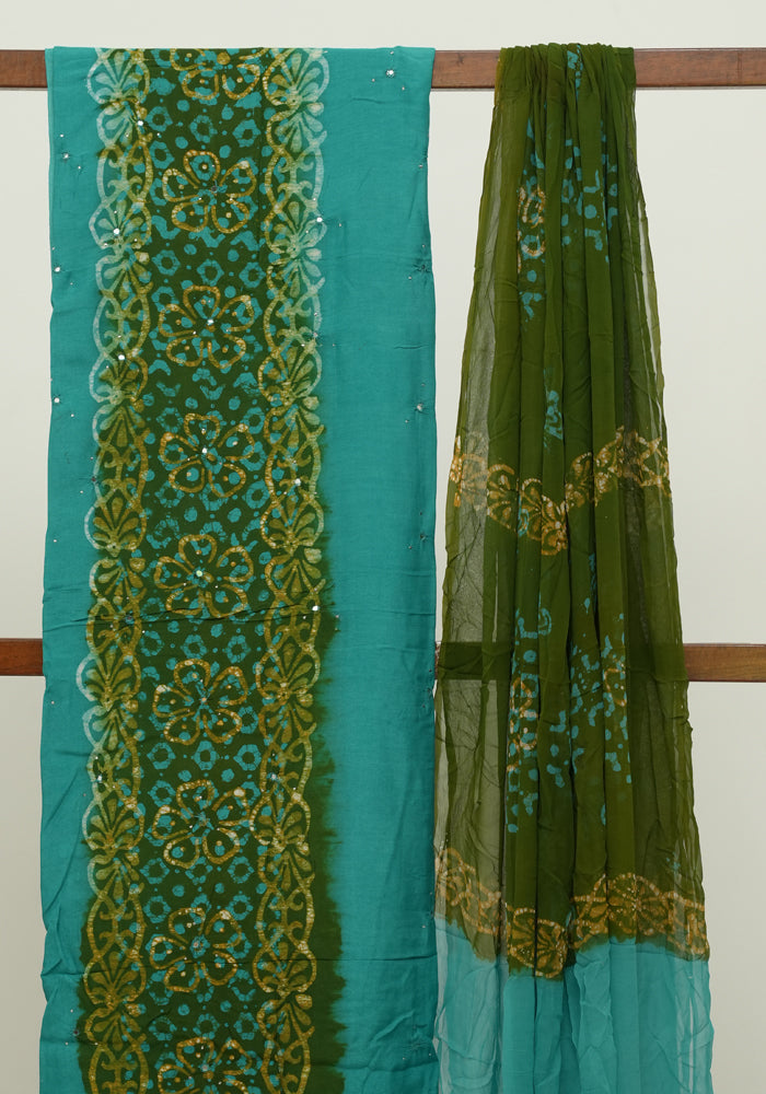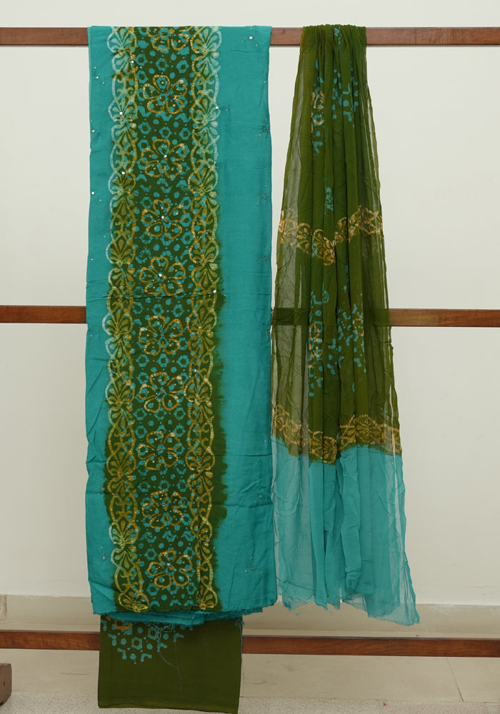 Sea Green and Mehandi Green Batik Unstitched Muslin Chennur Silk Salwar Set With Mirror and Badla Work