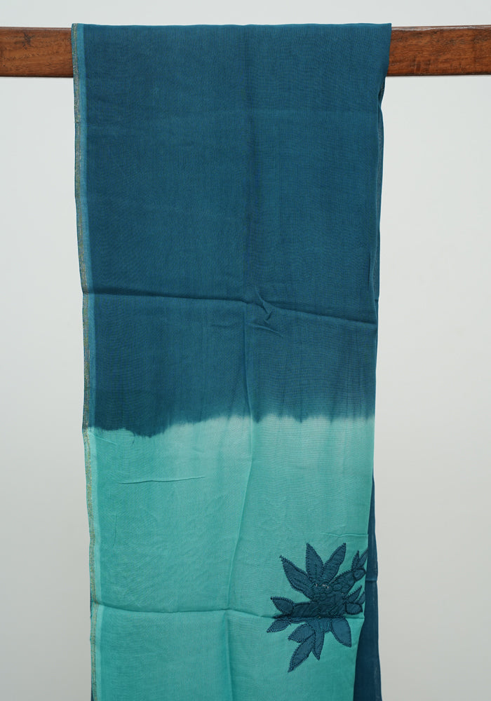 Sea Green and Teal Blue Unstitched Applique Work Kota Salwar Set With Silk Dupatta is OUT OF STOCK currently and available on pre-payment only. Order now for delivery within 2 weeks.