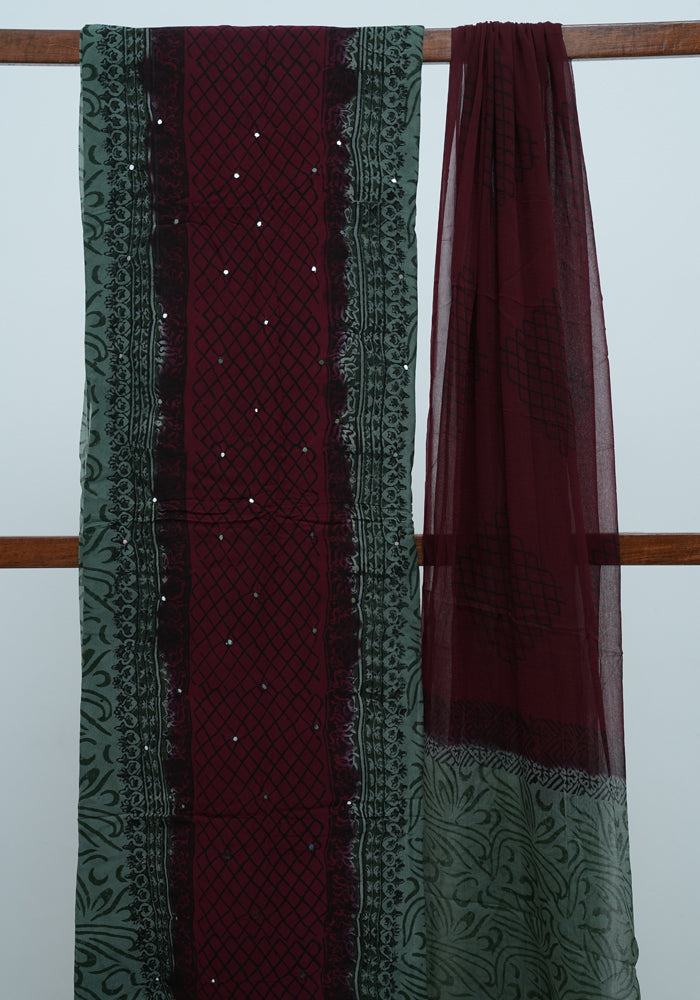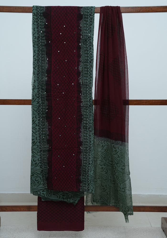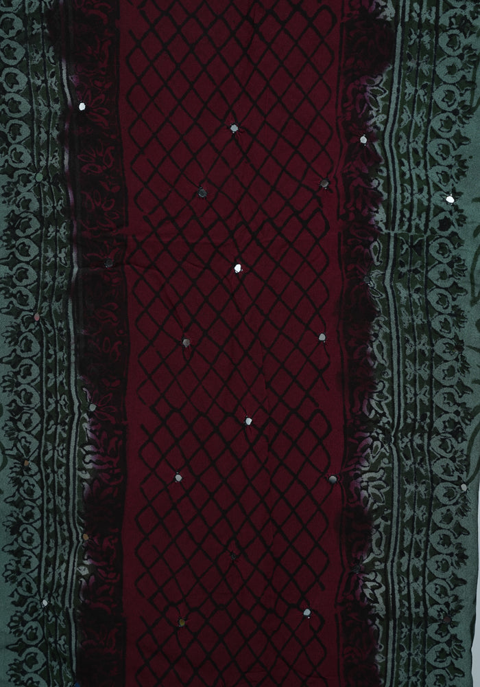 Teal Green and Jamun Red Unstitched Georgette Salwar Set with Mirror Work