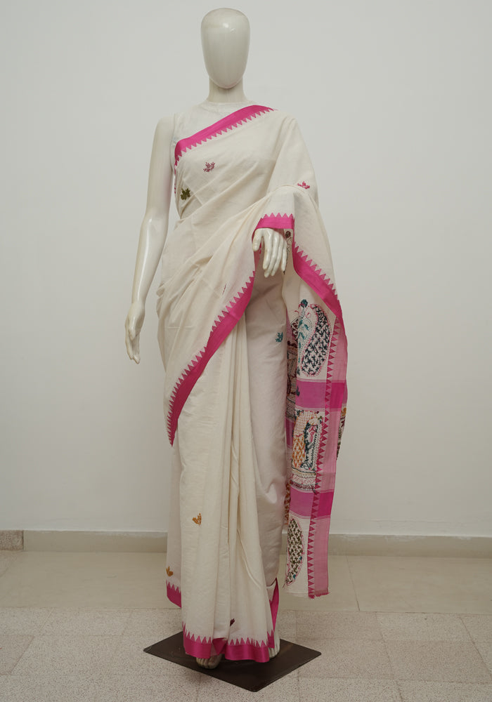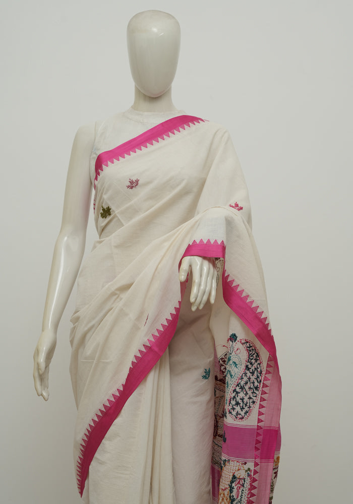 Soft and flowy, this saree is light as a breeze and drapes like a dream! cool and comfortable, perfect for the tropical heat and dry summers alike. Comes with blouse material attached as seen in the last picture.