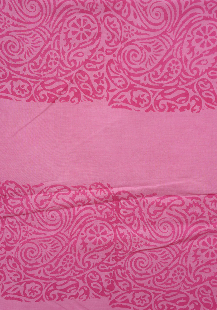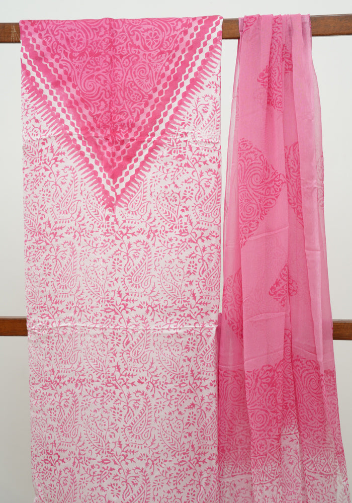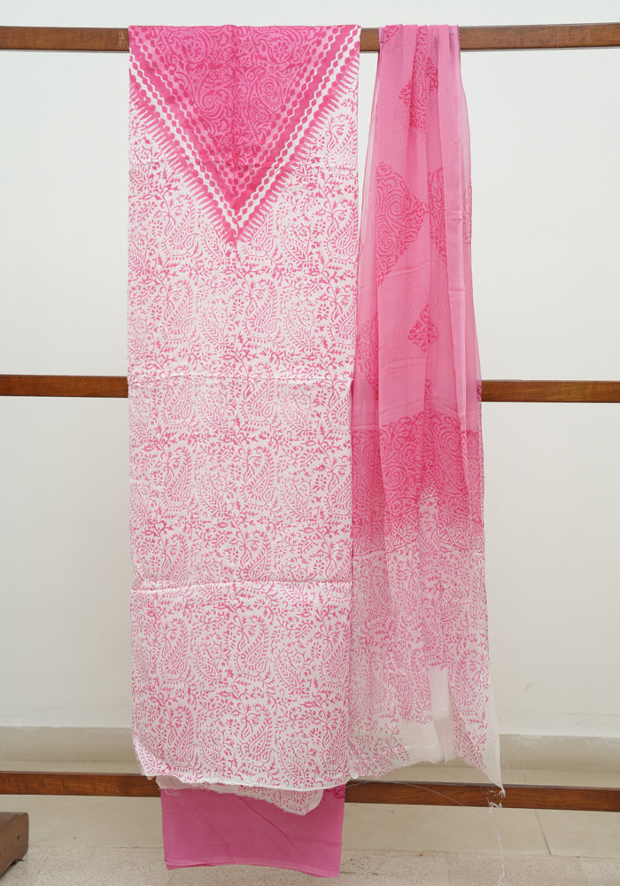 White and Pink Modal Silk Block Printed Unstitched Salwar Set