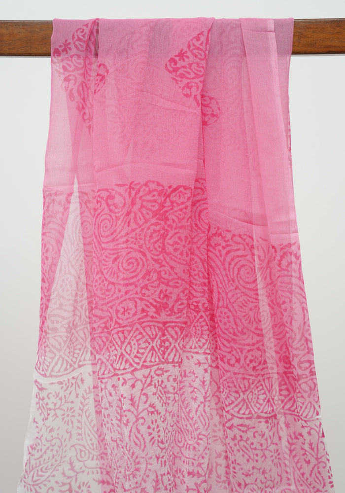 White and Pink Modal Silk Block Printed Unstitched Salwar Set is OUT OF STOCK currently and available on pre-payment only. Order now for delivery within 2 weeks.