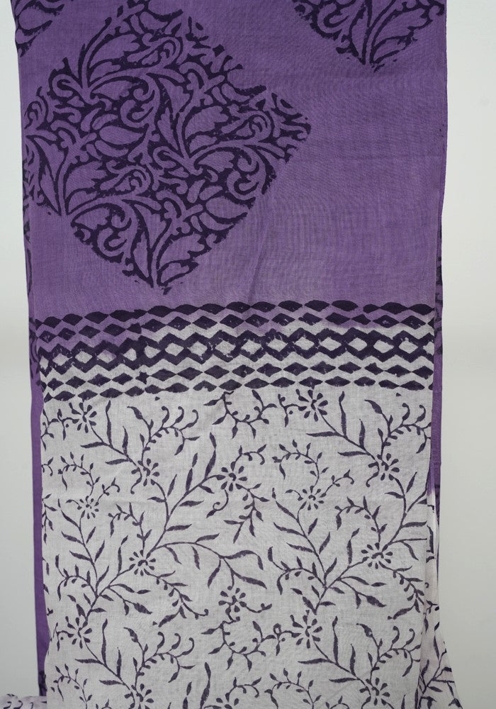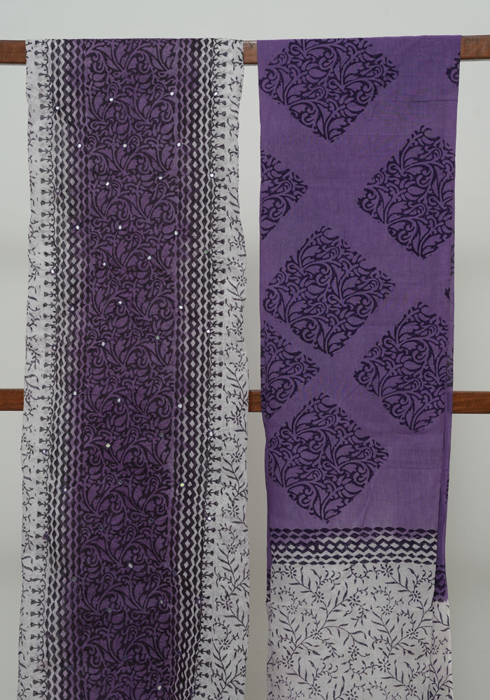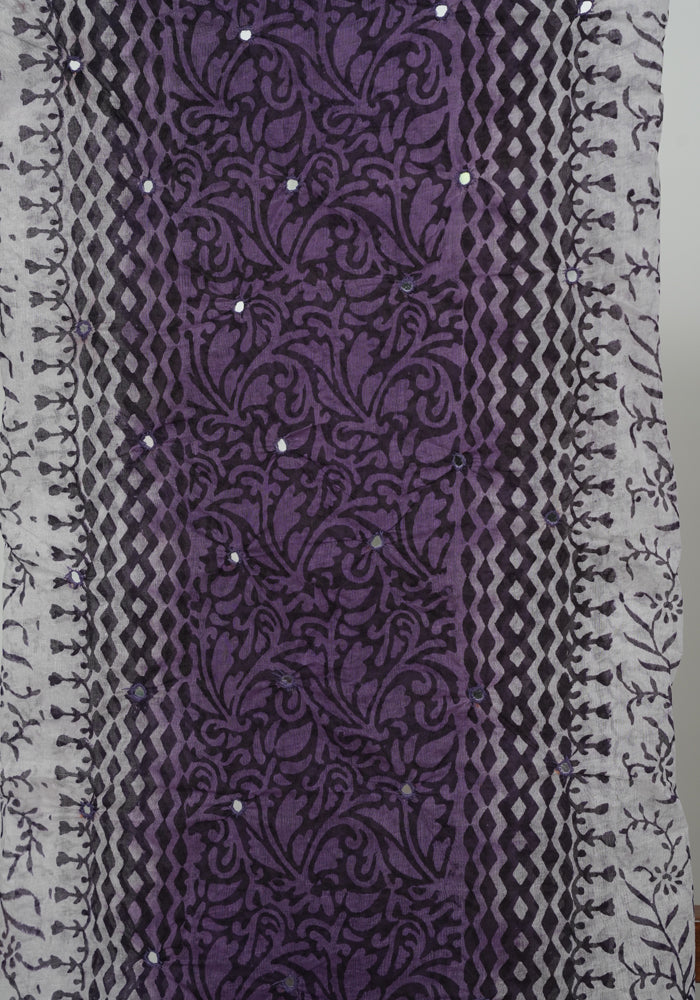 White and Purple Unstitched Organdy Cotton Salwar Set With Mirror Work