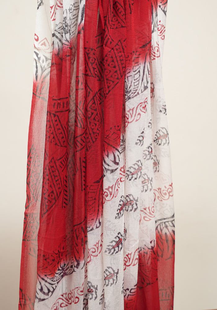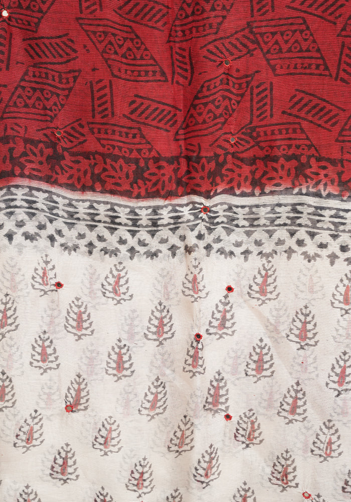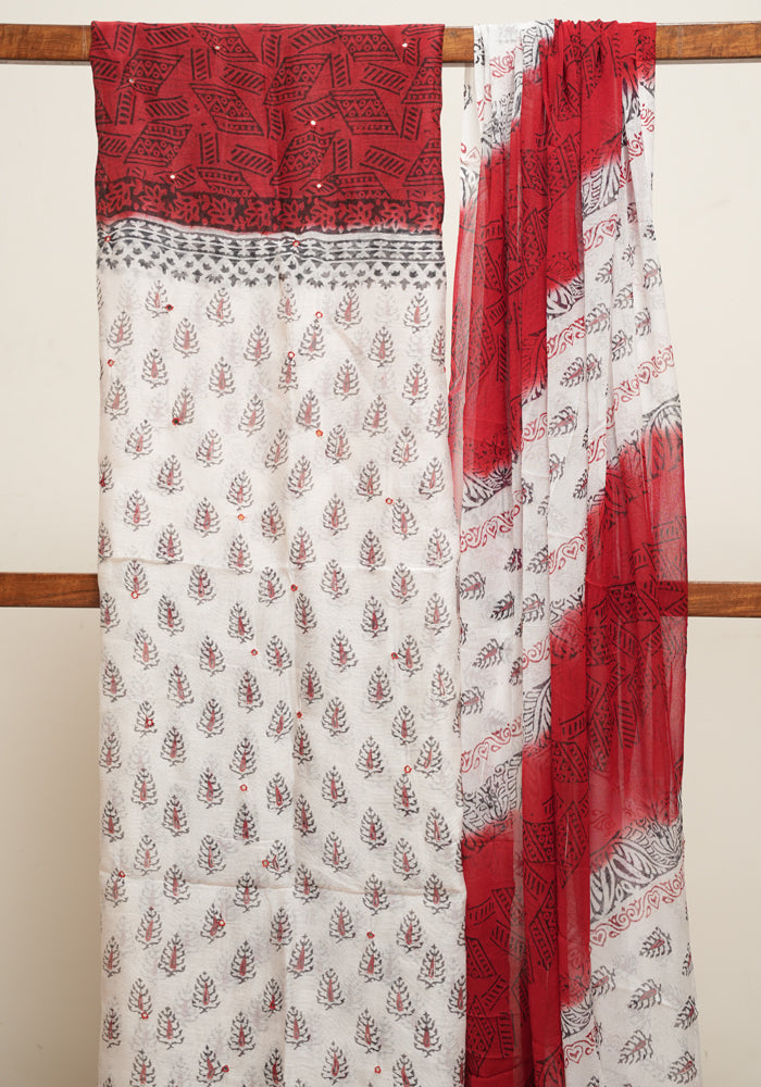 White and Red Unstitched Super Net Salwar Set with Mirror Work