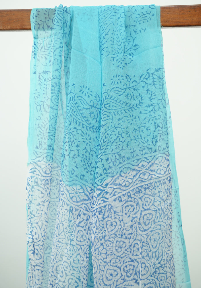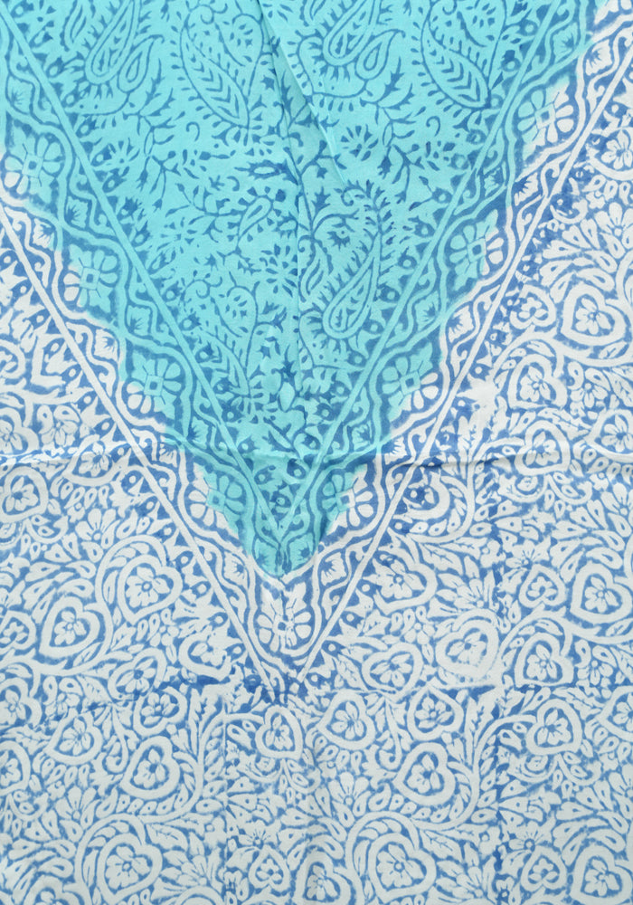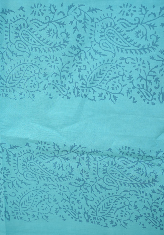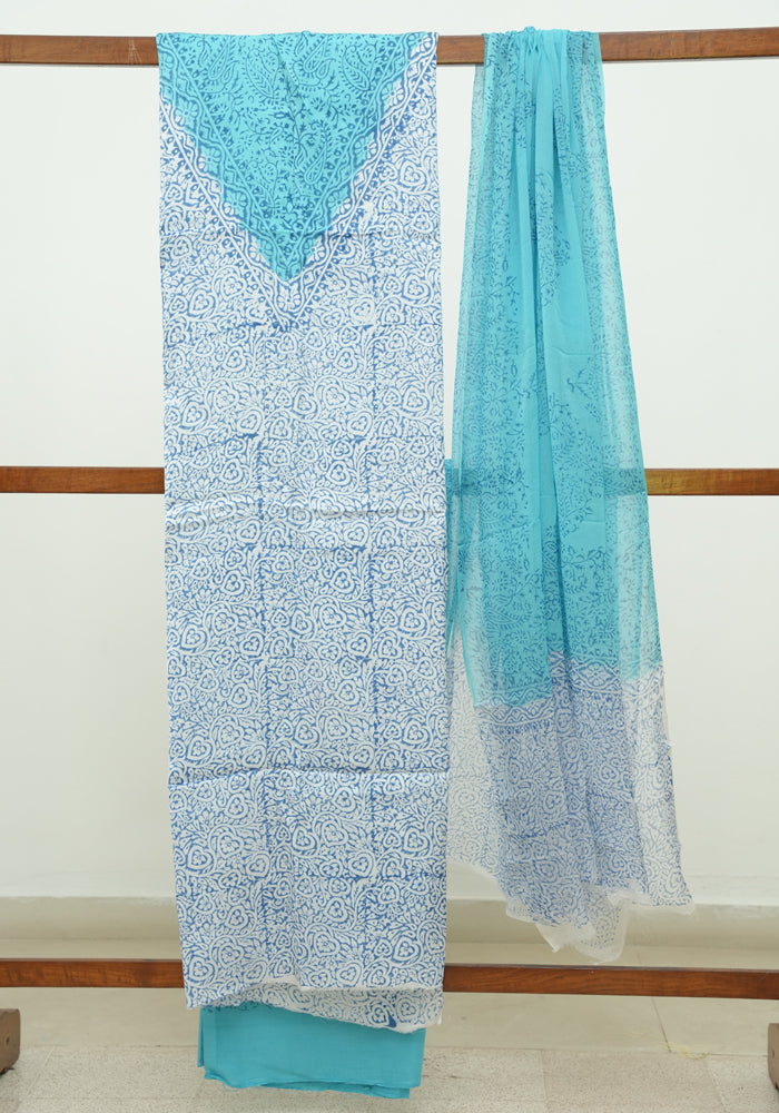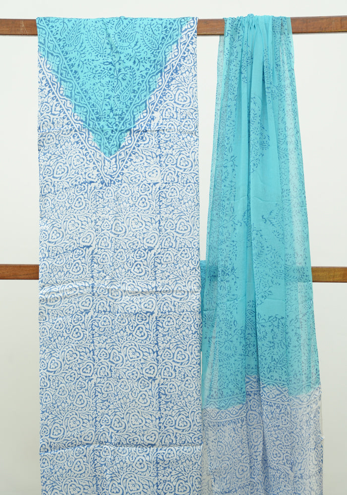 White and Sky Blue Modal Silk Block Printed Unstitched Salwar Set